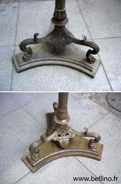 Restitution de la patine mordorée d'un lampadaire Tiffany aprés élimination des couches de poussière et d'oxydation atmosphérique.